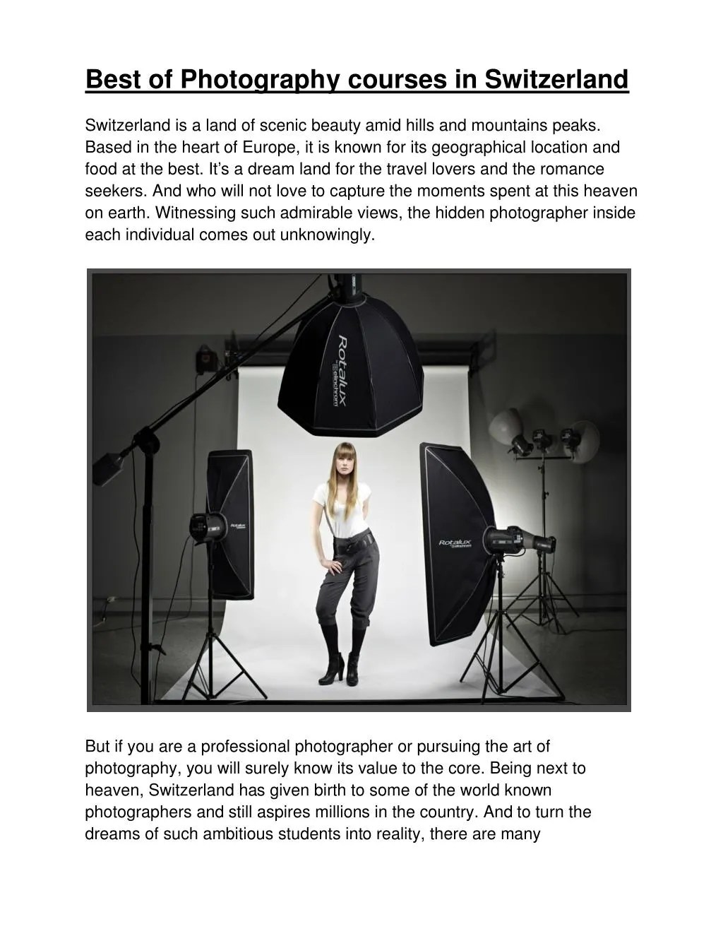 The Rome School of Photography (RSP) is one of the most prestigious and renowned photography schools in Europe. The school offers a variety of courses for all levels, from beginners to professionals. The courses are taught by experienced photographers who have worked with some of the world's most famous fashion houses, magazines and newspapers. The school has several programs to choose from, including a Foundation Program, an Advanced Program, and a Professional Program.